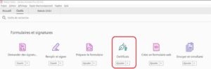 Si elle est bien installée sur votre poste, vous devez ouvrir la synthèse (pdf) via Acrobat Reader, et signer en suivant les étapes :