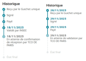 Dans un 1er temps, votre dossier est validé par l’INSEE puis il est transmis au valideur compétent.
